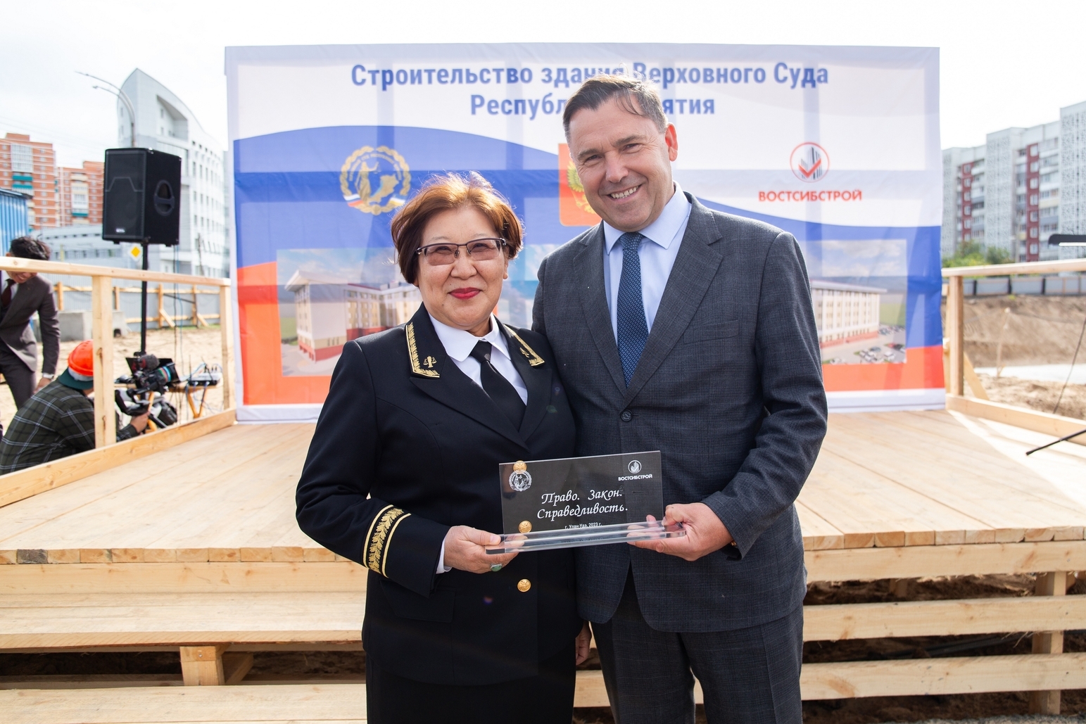 До этого дня была проделана большая работа и за плодотворное сотрудничество, профессионализм и ответственность при проектировании нового здания Верховного Суда Республики Бурятия коллективу АО «ВостСибПроект» была объявлена благодарность от Председателя Верховного Суда Республики Бурятия.